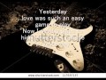 これは、1965年8月にリリースされたビートルズ5枚目のイギリス盤公式オリジナル・アルバム『4人はアイドル』のB面6曲目に収録された曲なんだそうです。レノン=マッカートニーの作。実質的にはポール・マッカートニーの作品とされているようです。リード・ヴォーカルもポール。英語の歌は舌を噛みそうになります。したがってカミカミ王子の歌です(^^; カラオケ大好き! http://ameblo.jp/ukiukiwakwak21/ザ・ビートルズ 『YESTERDAY』 Cover - YouTube | |
